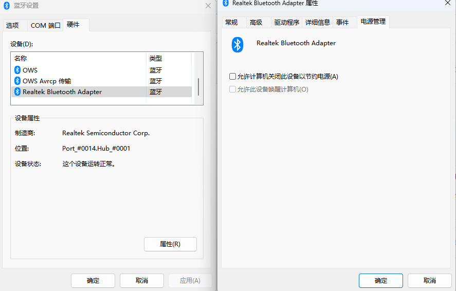 蓝牙耳机连接WIN11系统过后,不断断开和重新连接。 一往无前 2025-09-11 18:37:28 233 0 0 一、打开 "蓝牙设置" 二、打开 "设备管理器"后,选择Bluetooth,将 “允许计算机关闭此设备以节约电源” 打钩去掉。